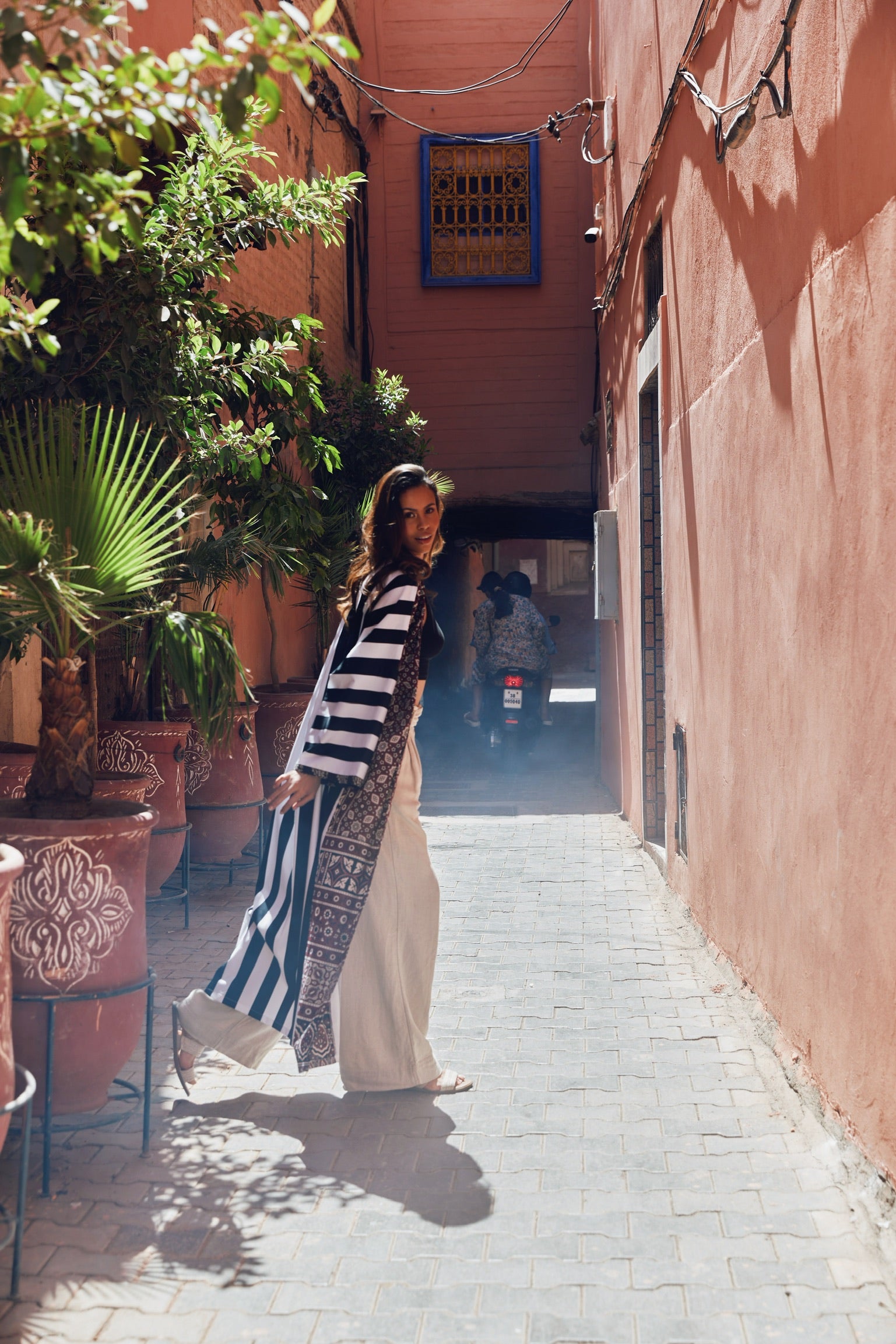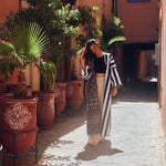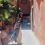 Traditional Pakistani block print cotton, unique to the region of Sindh. Paired with a striped cotton.
