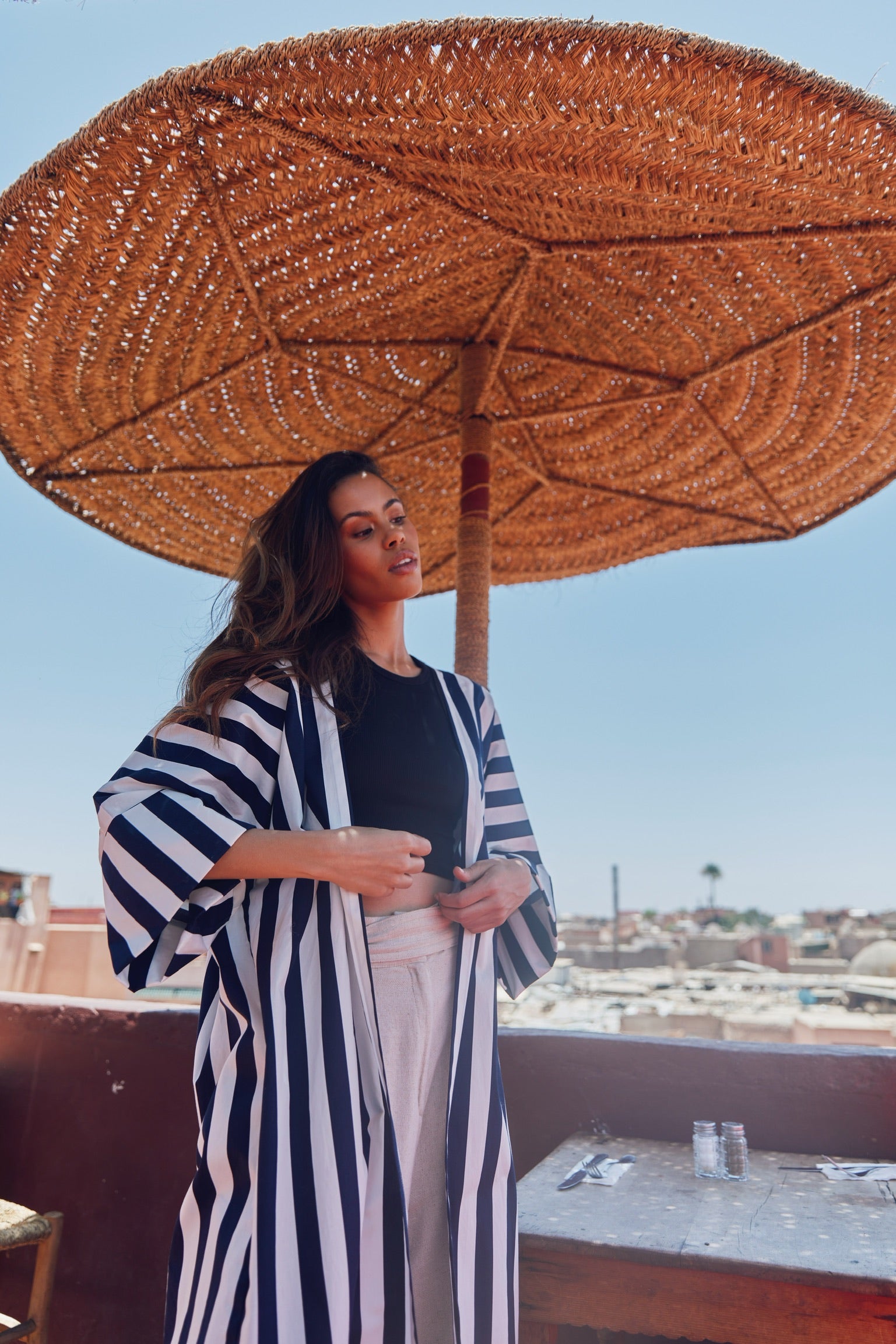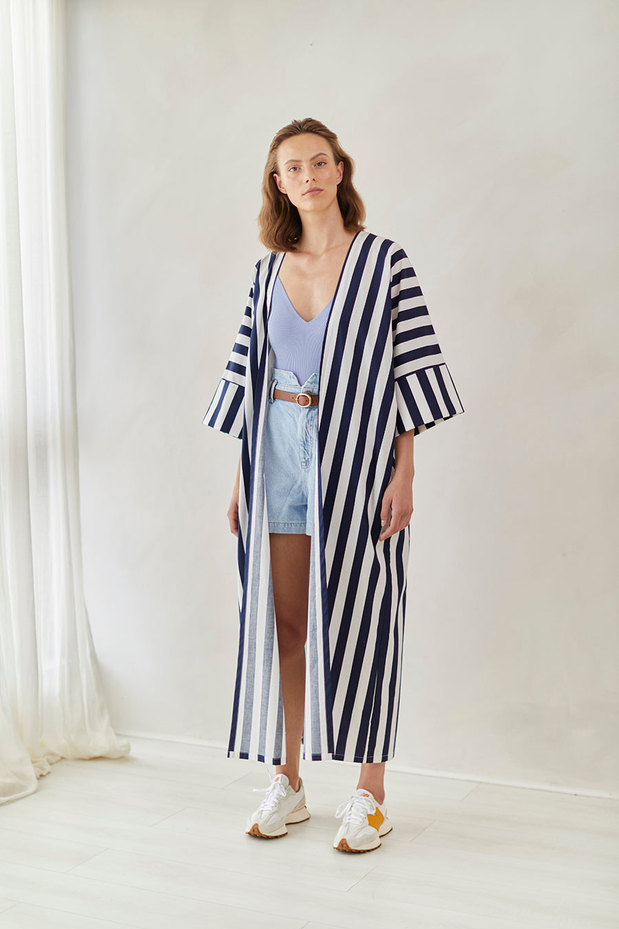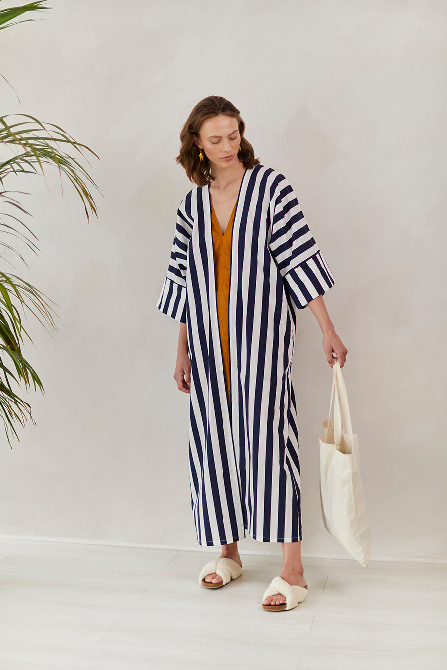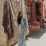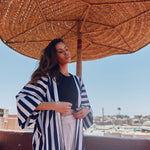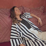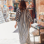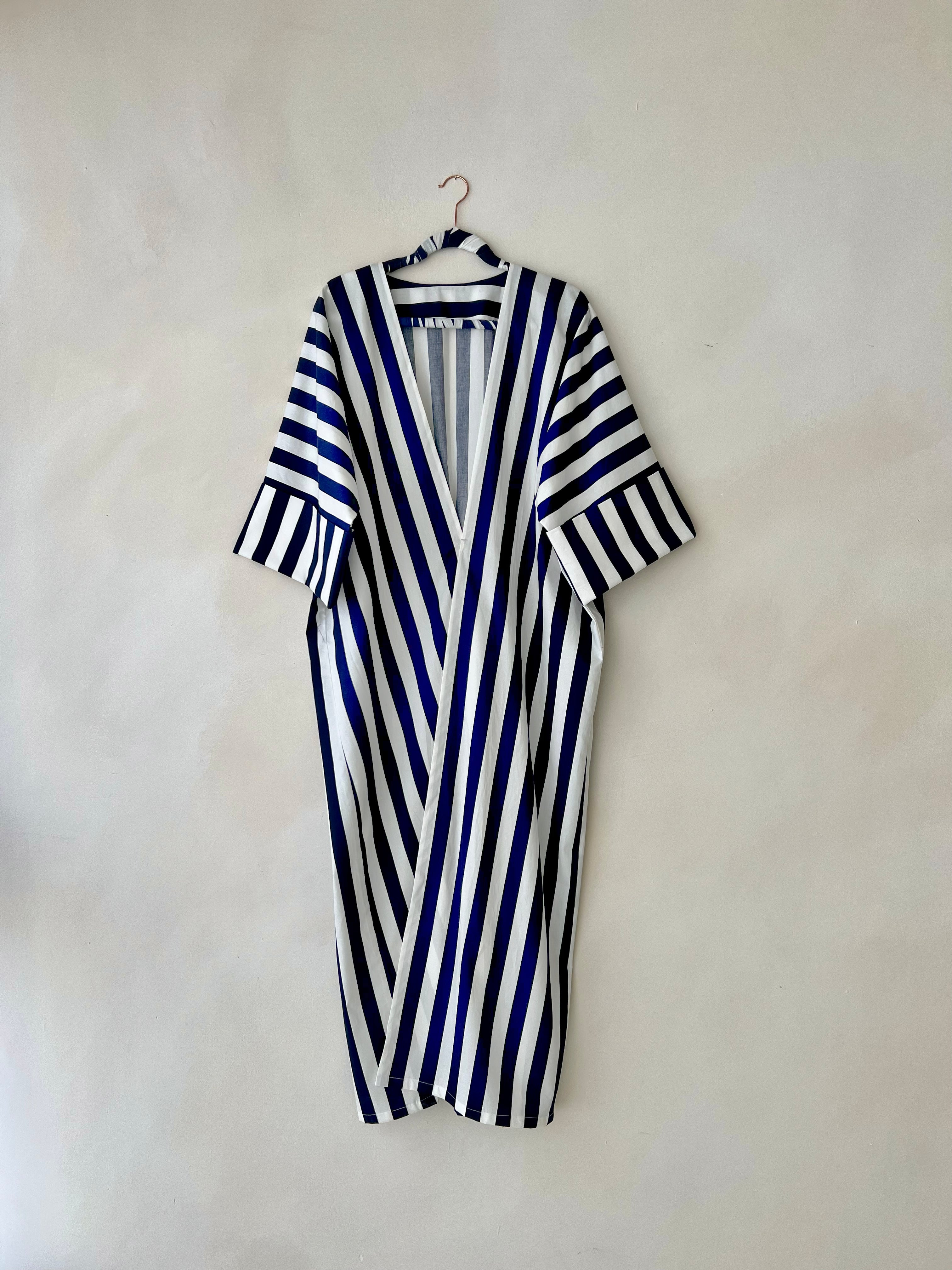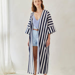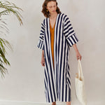 Striped cotton abaya redesigned from the classic bestseller and most sought after - "Rumi" now available for the first time in different sizes.