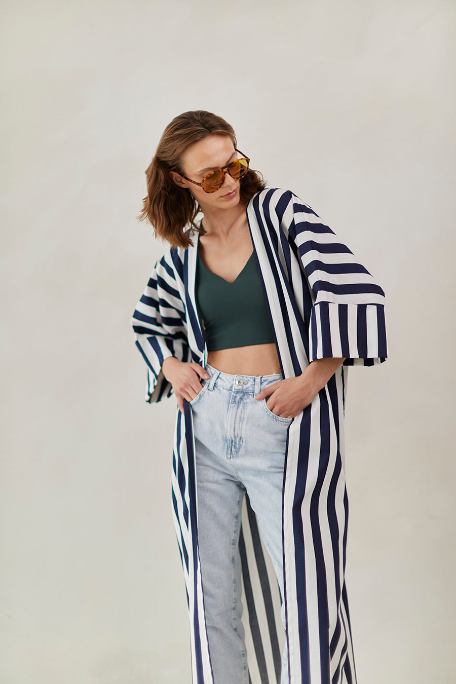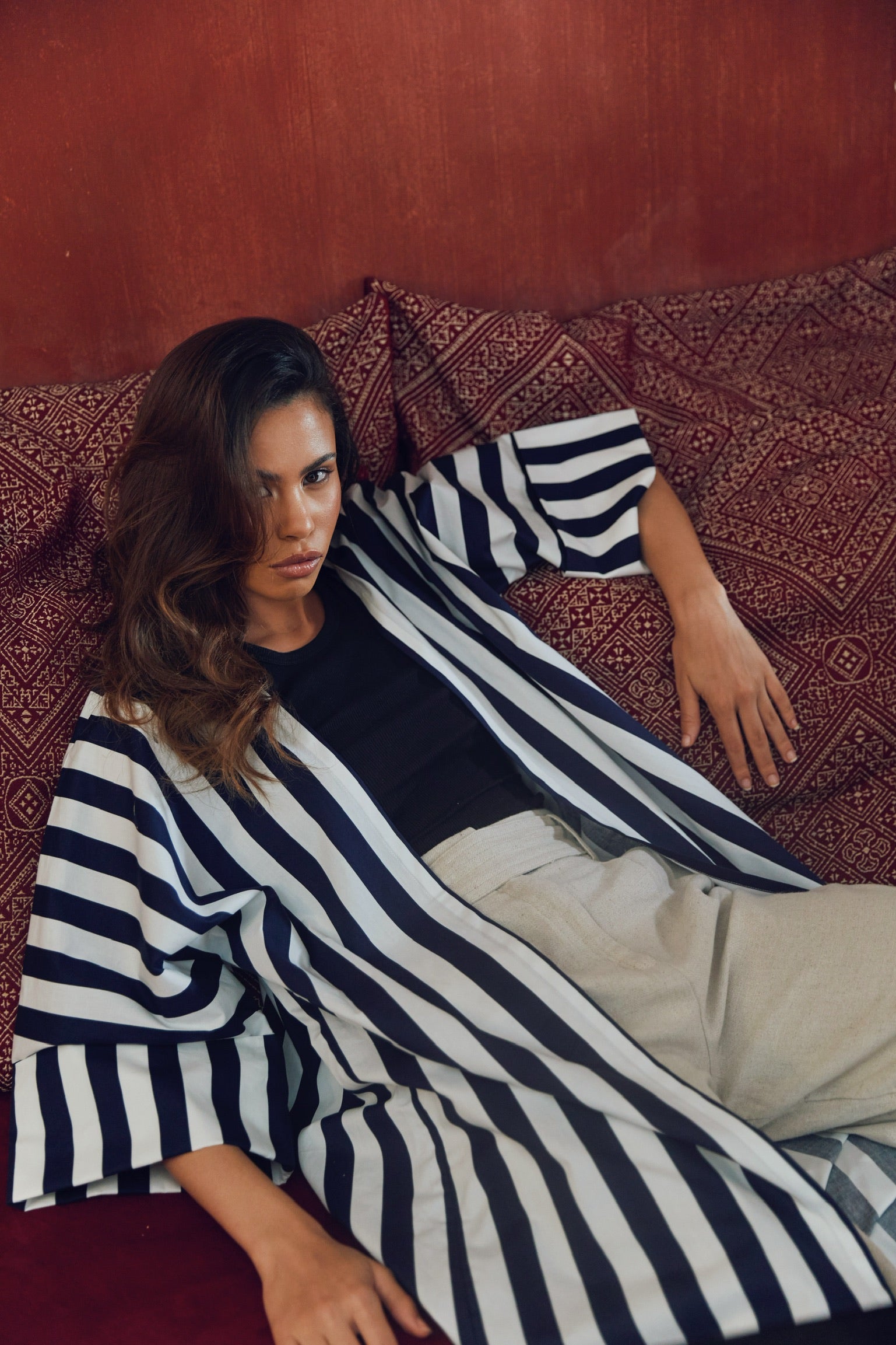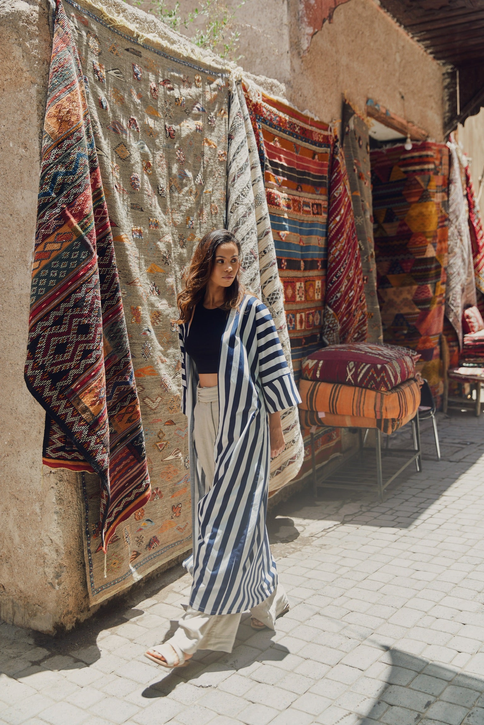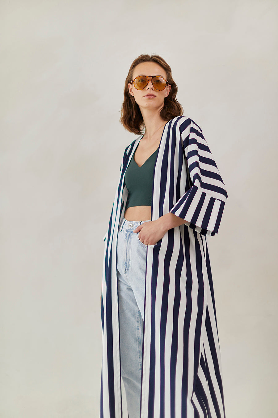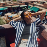 Striped cotton abaya redesigned from the classic bestseller and most sought after - "Rumi" now available for the first time in different sizes.