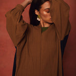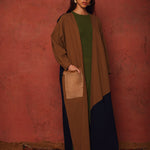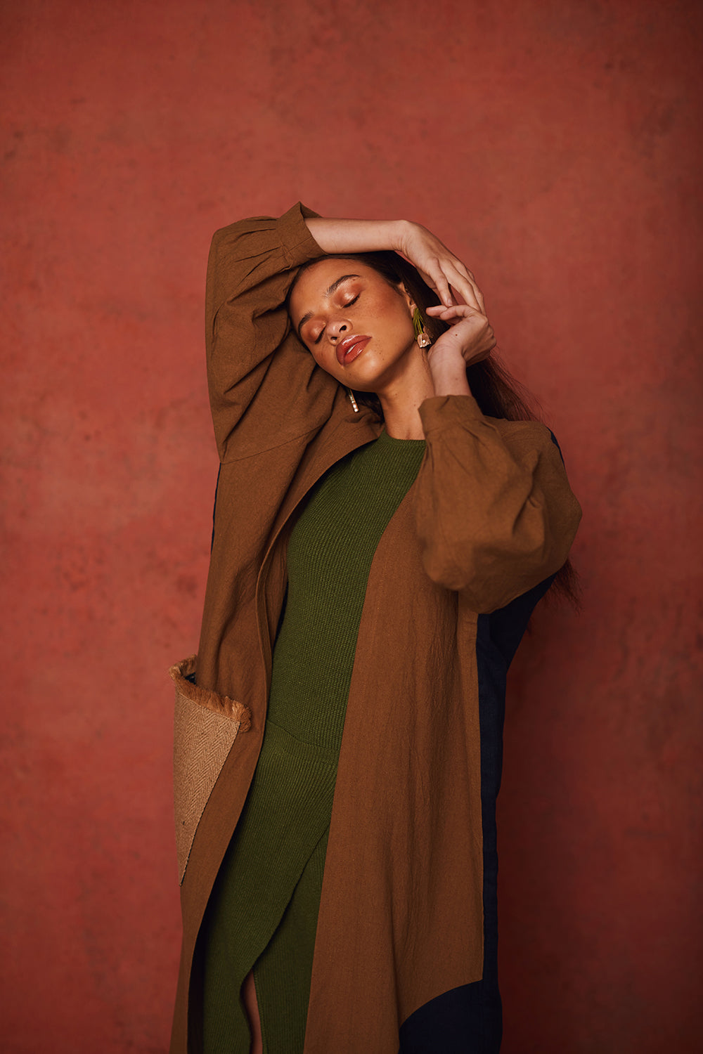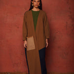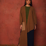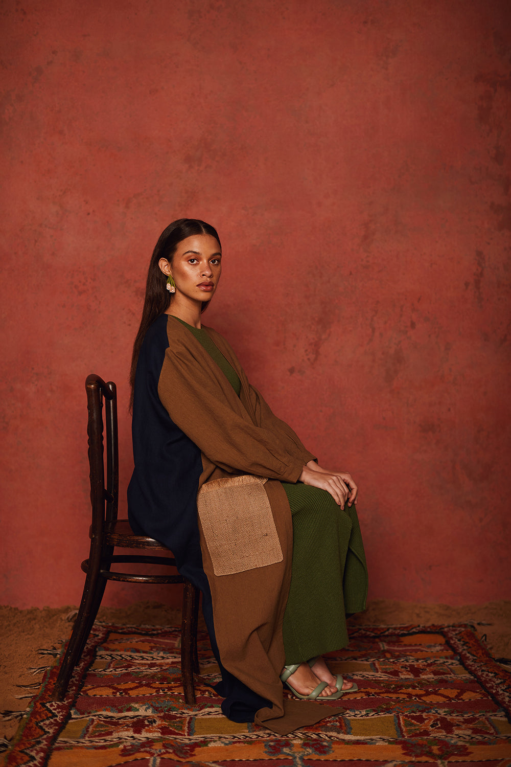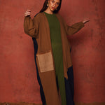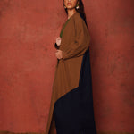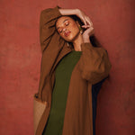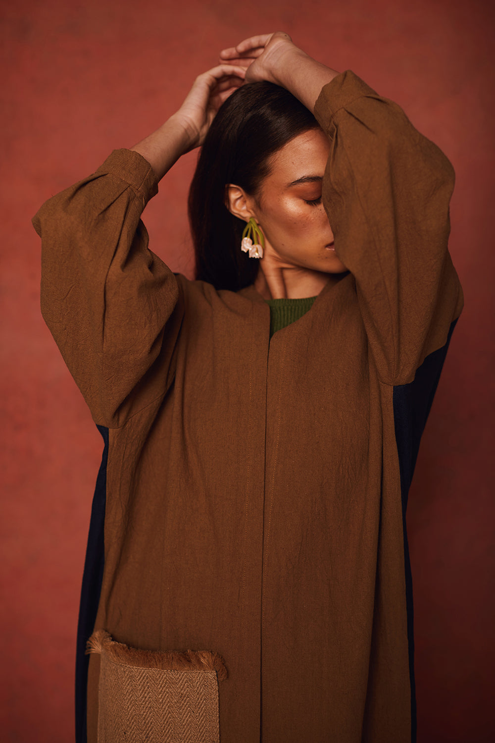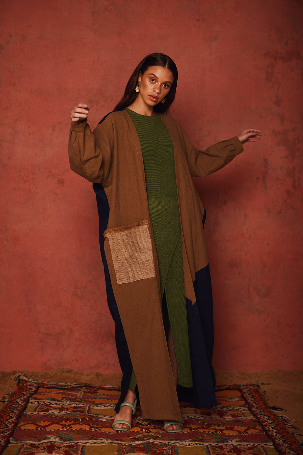Playing with lines! This Japanese linen and cotton mix abaya has a washed finish with a brilliant crumpled texture and slightly faded colours. A soft canvas like fabric perfect to finish that casual chic look. Detailed with a hessian pocket