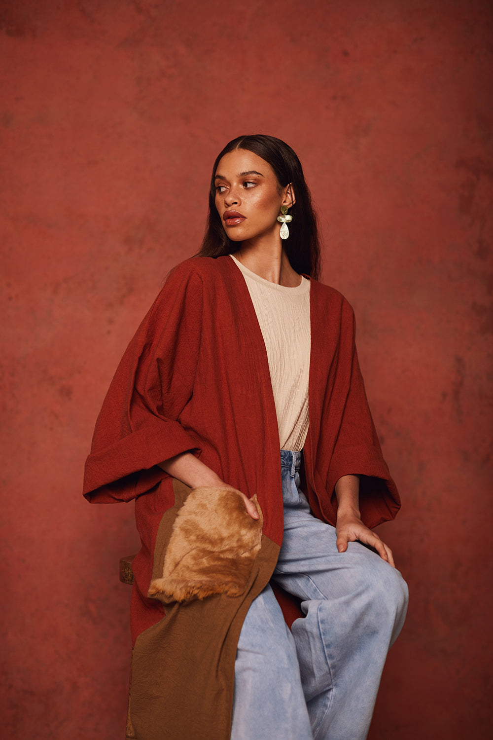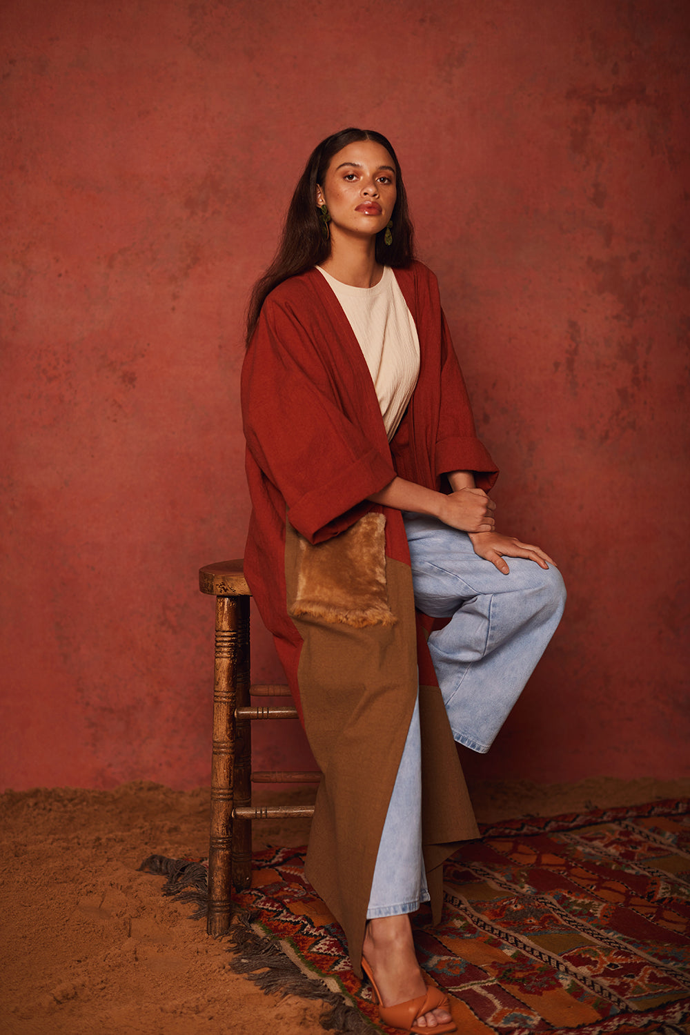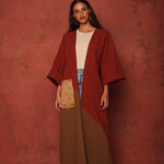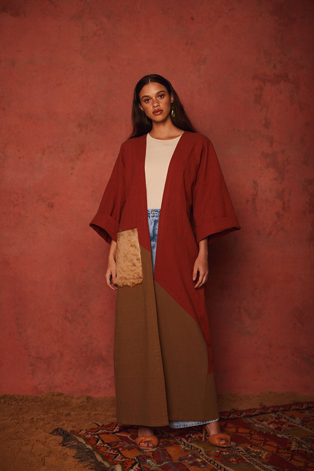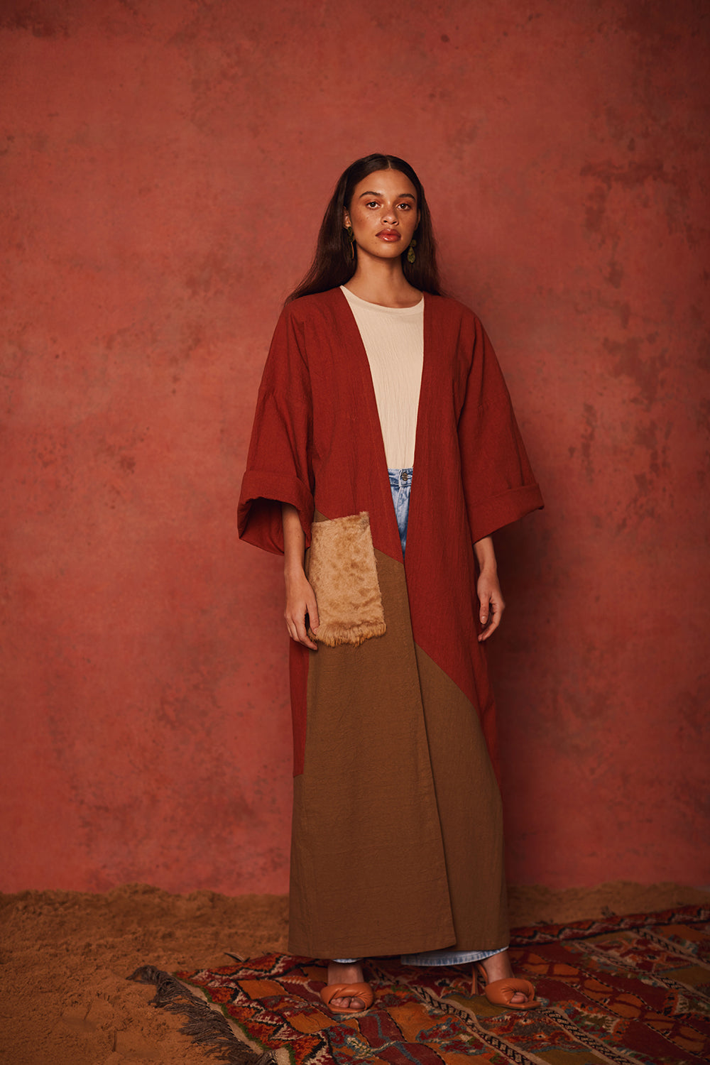 Playing with lines! This Japanese linen and cotton mix abaya has a washed finish with a brilliant crumpled texture and slightly faded colours. A soft canvas like fabric perfect to finish that casual chic look.  We love the goat skin pocket.