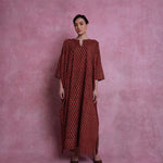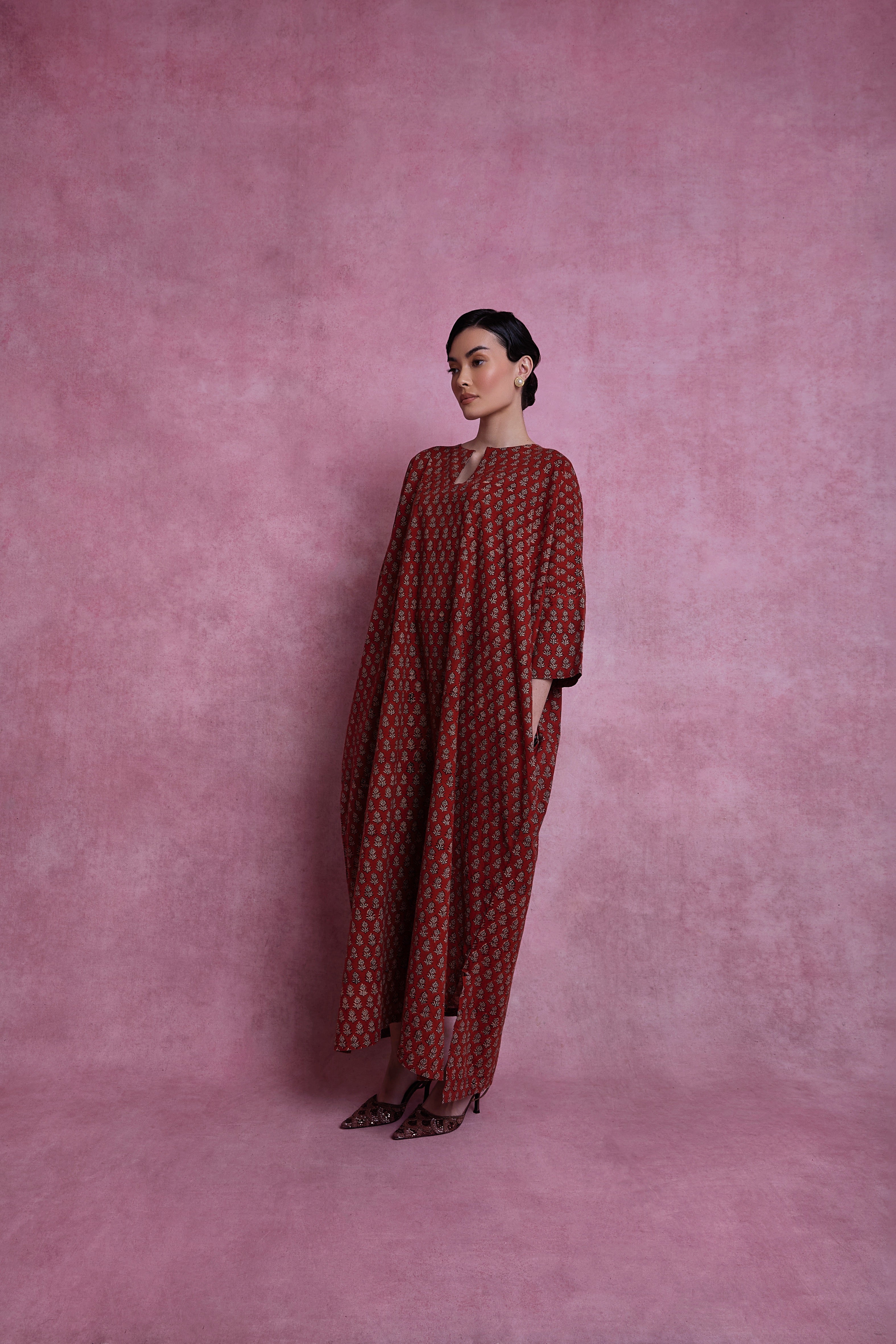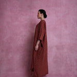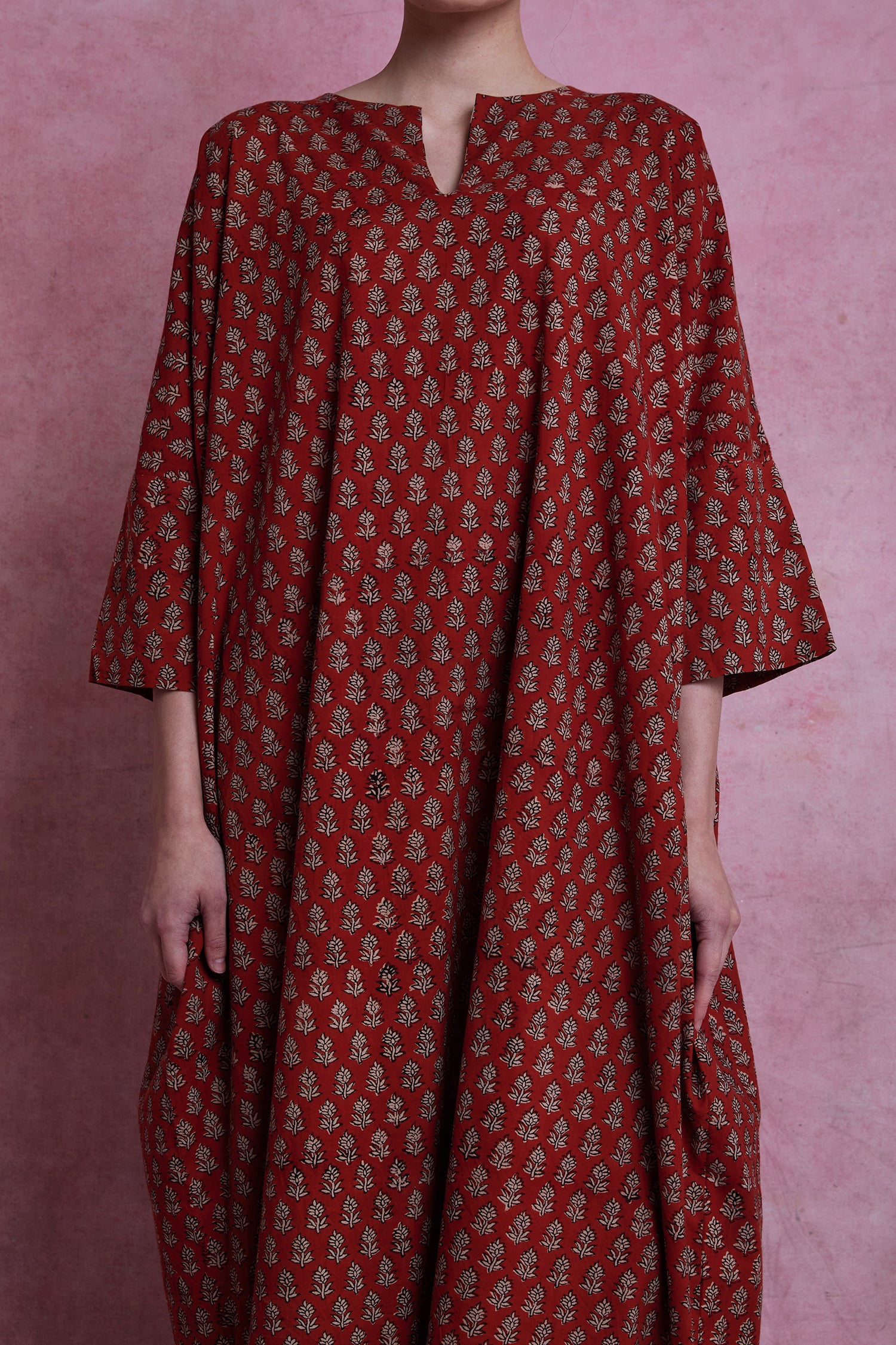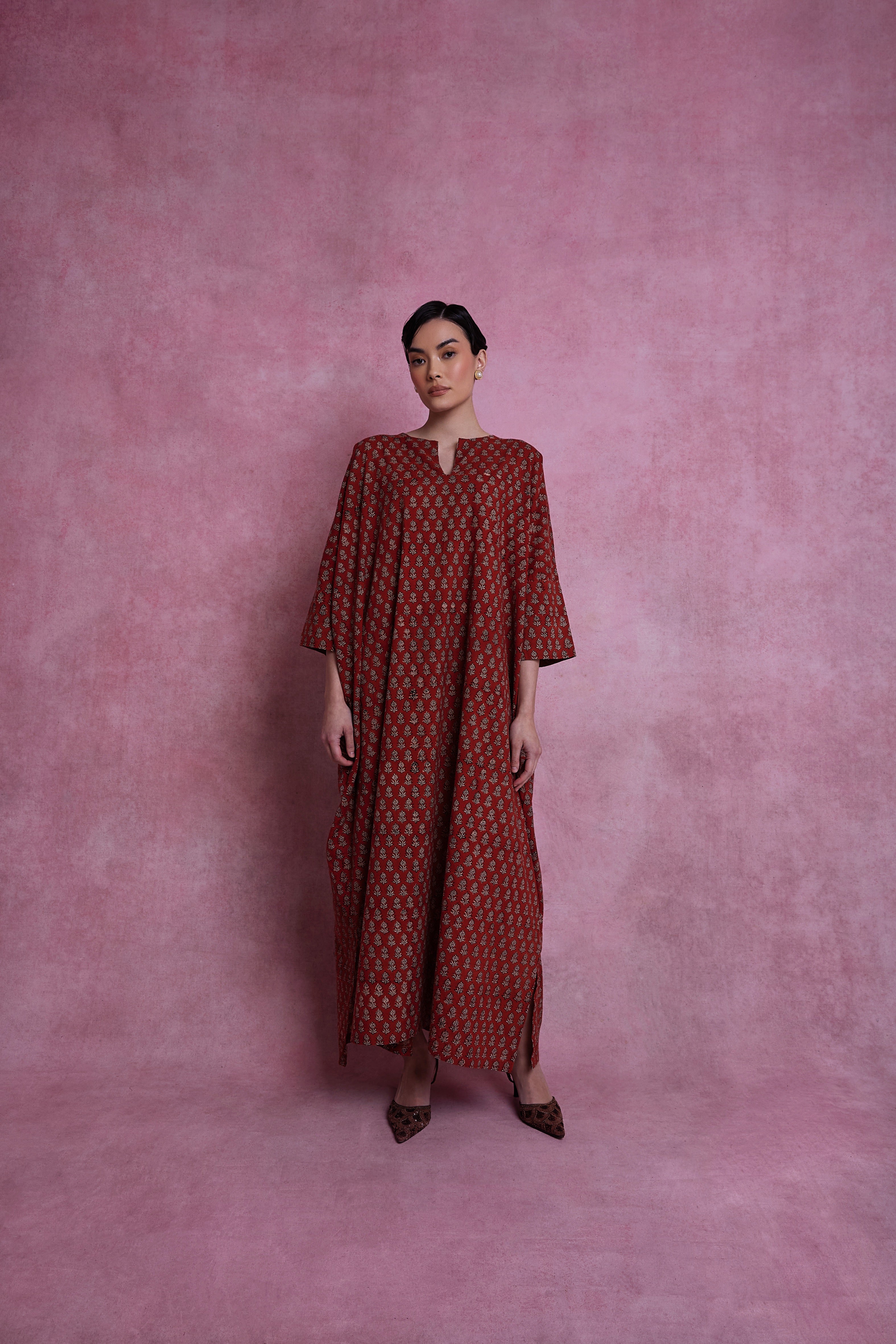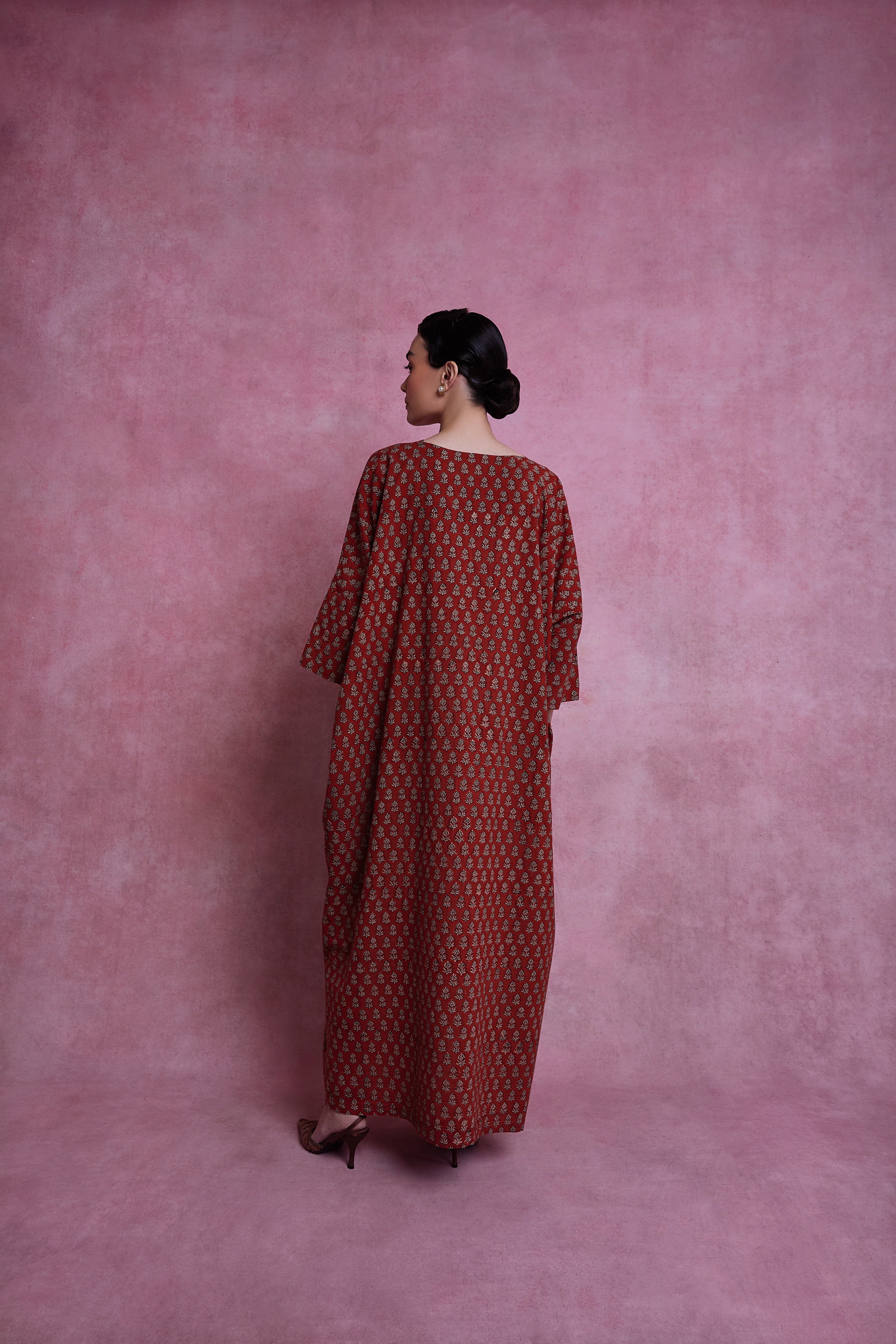 Indian block printed kaftan with pockets. This kaftan is available in a beautiful selection of prints to make it unique for you.  Please contact us to show you the latest artisanal block prints from India.
