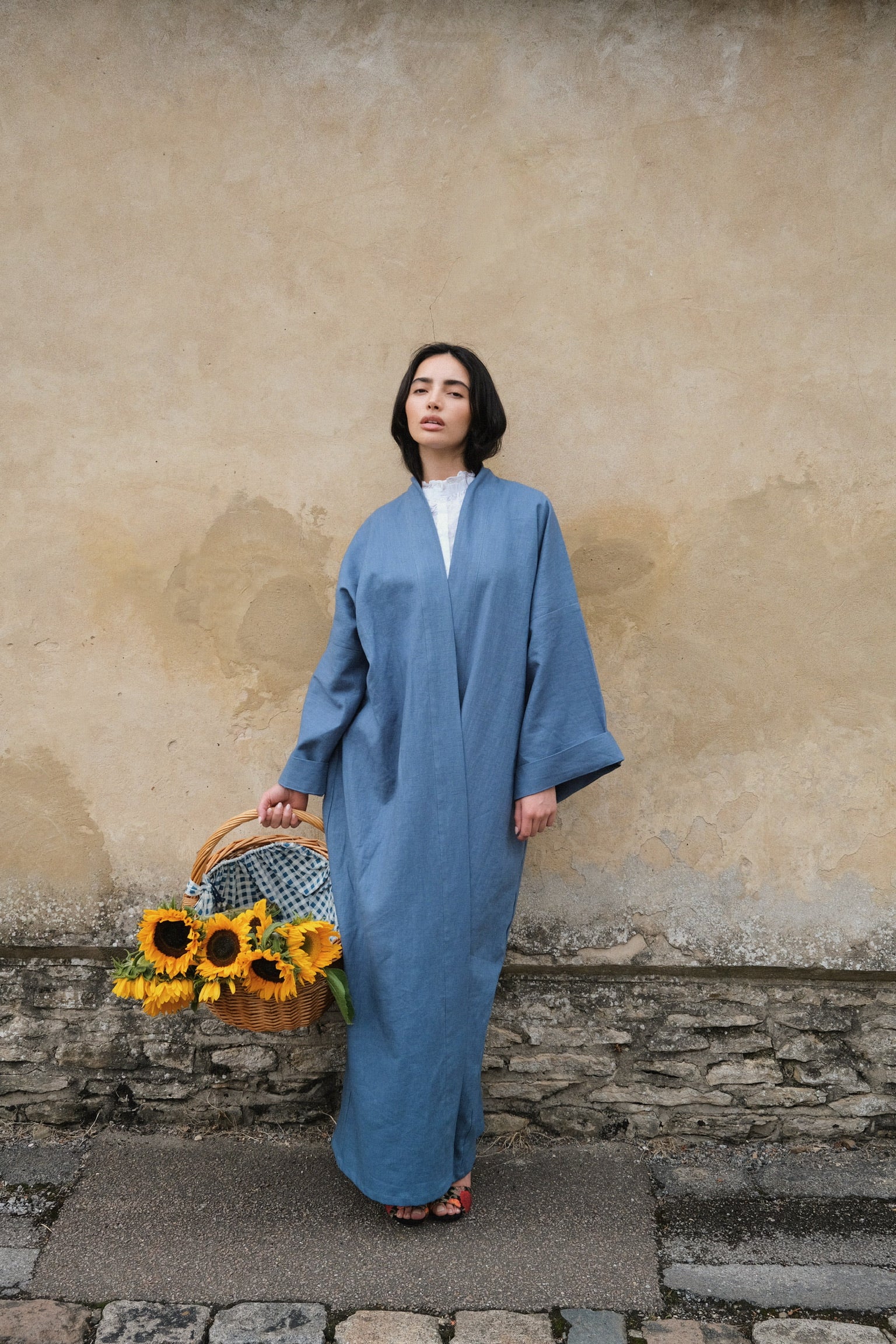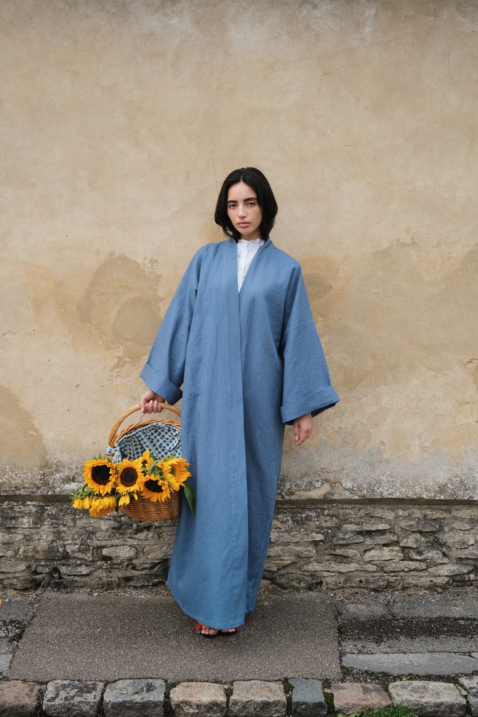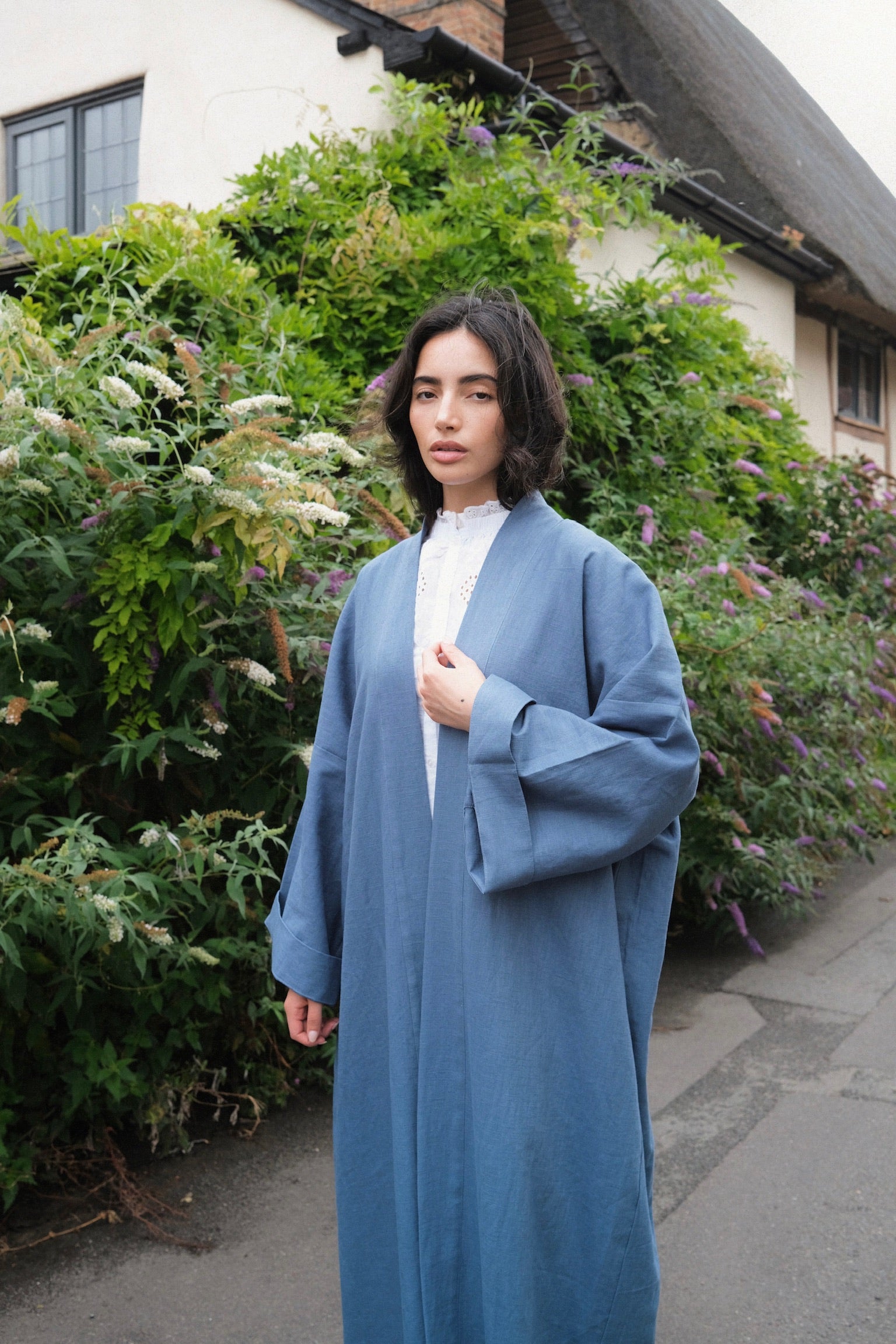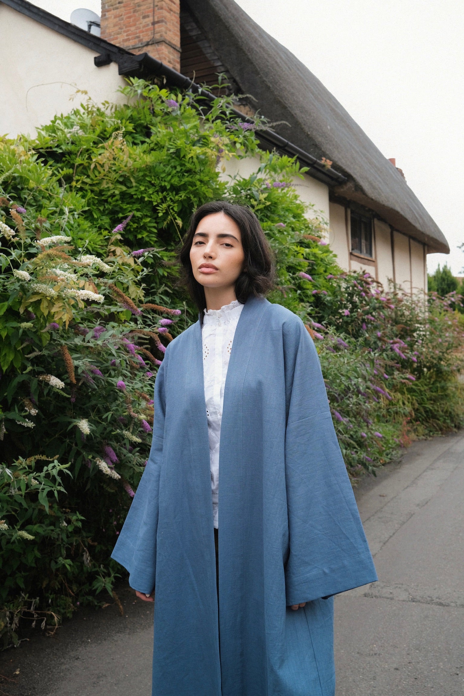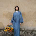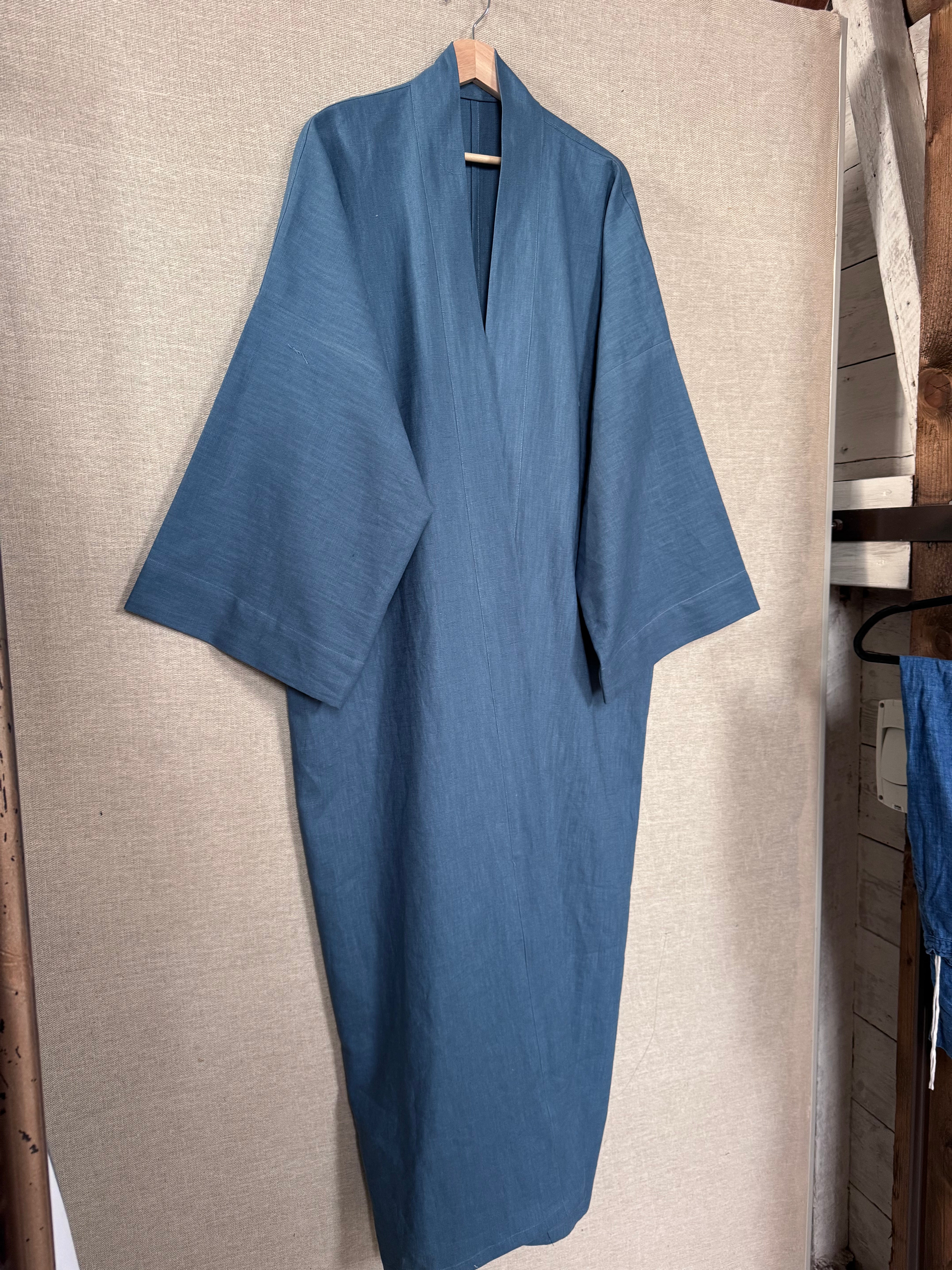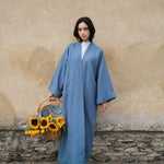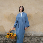 Luxury linen kimono in a timeless silhouette, inspired by the Japanese kimono. Available on order.