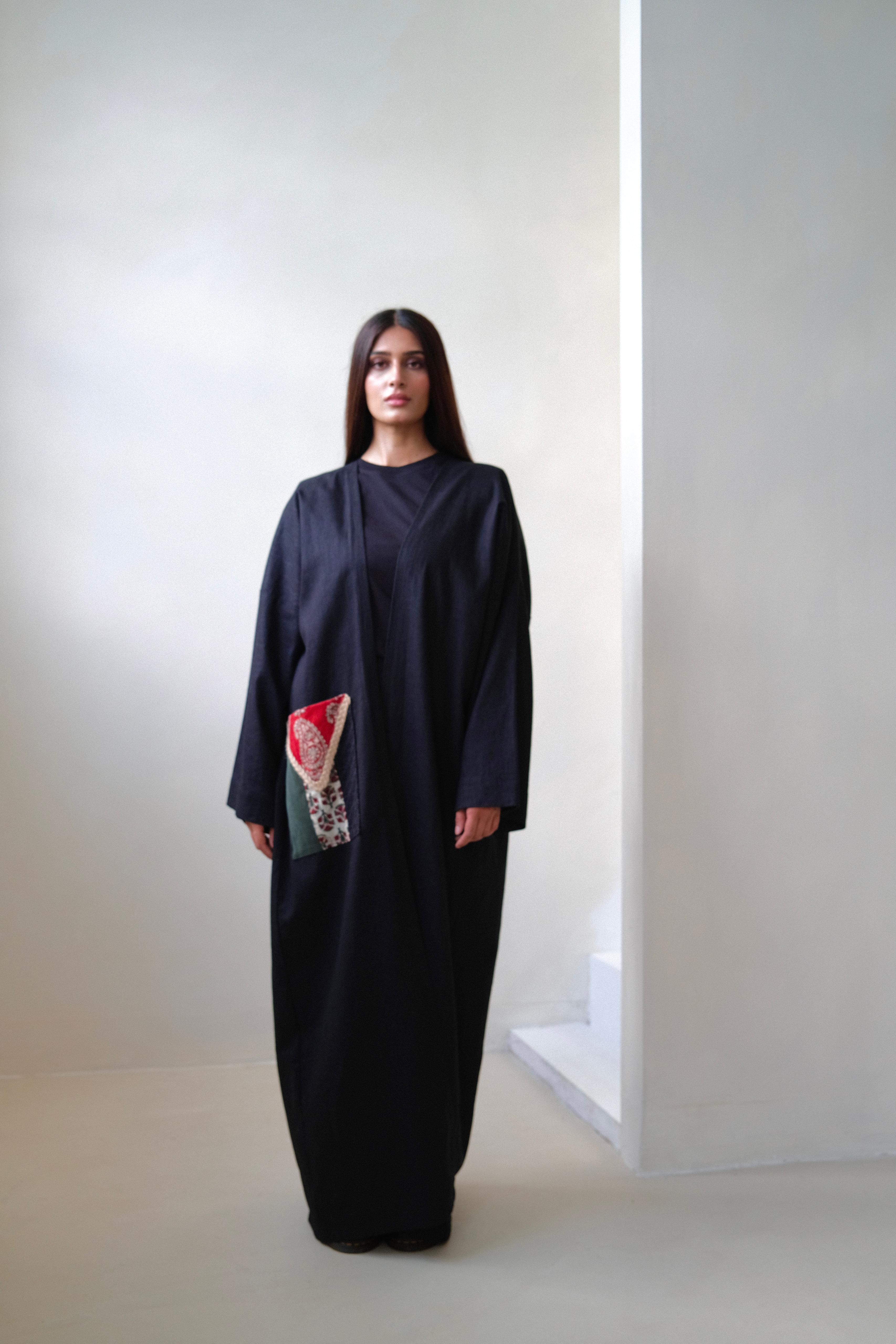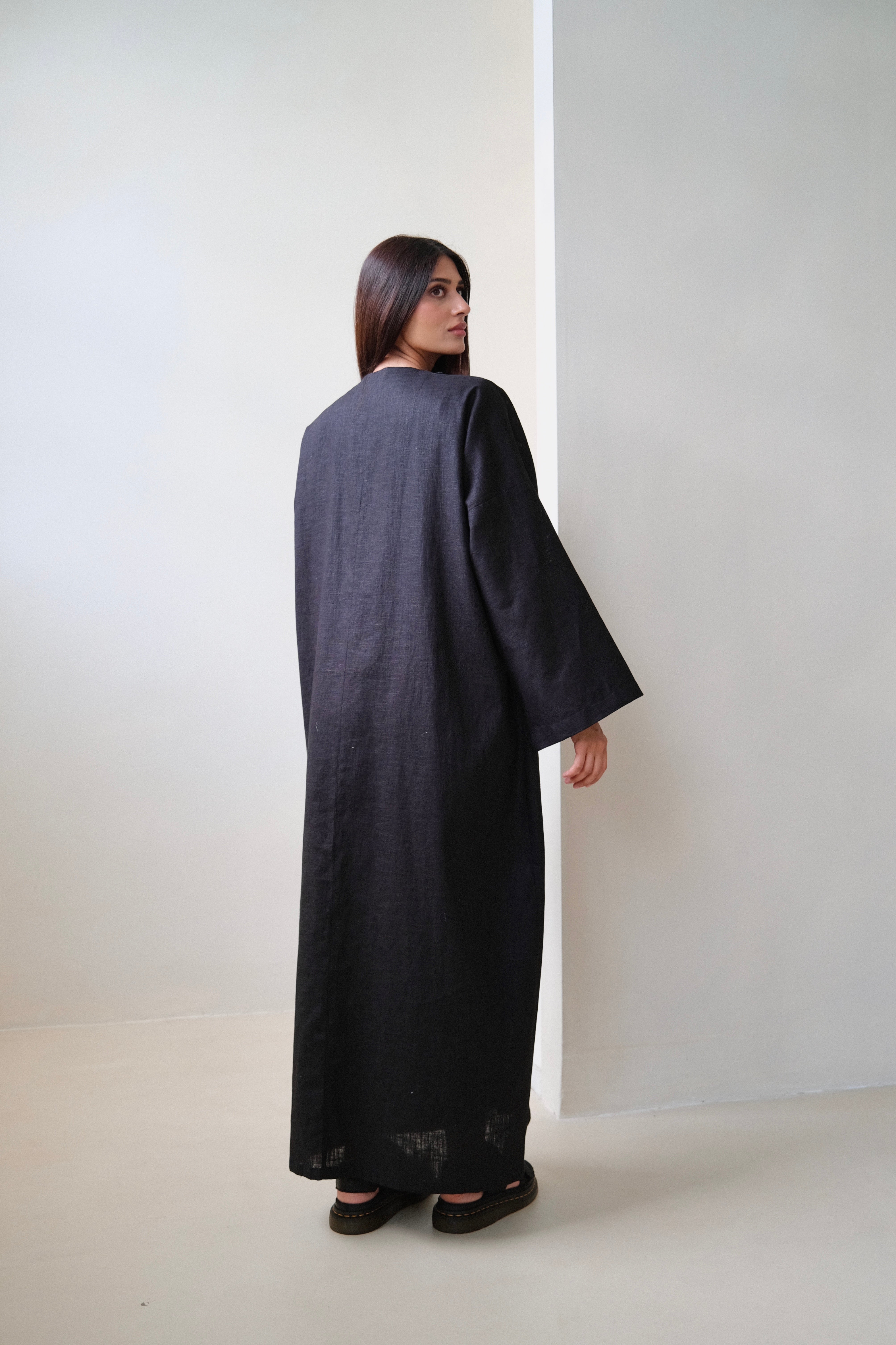 THE BLACK LINEN ABAYA - with a personalised Palestine pocket.