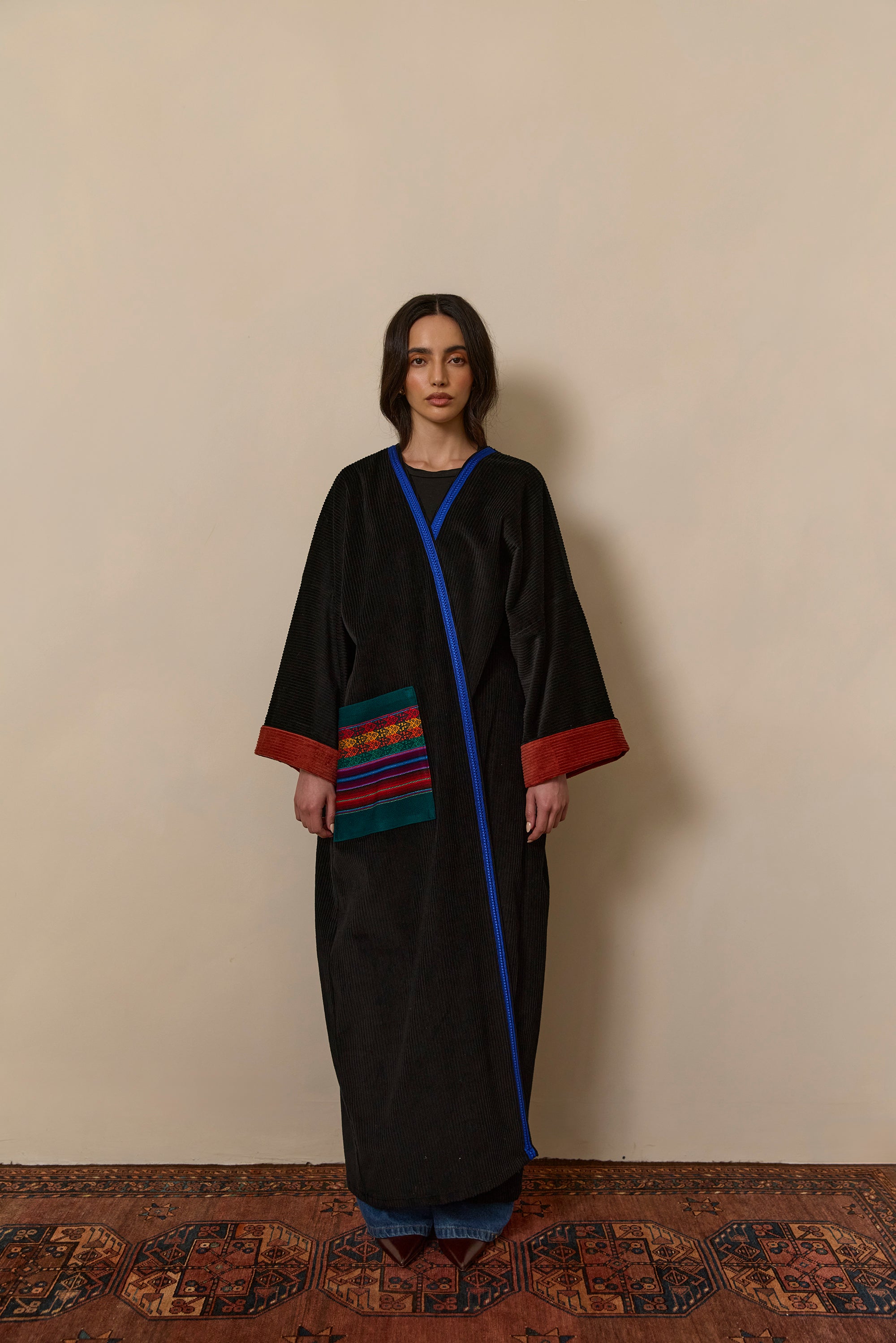 ASWAD ABAYA WITH PALESTINE POCKET