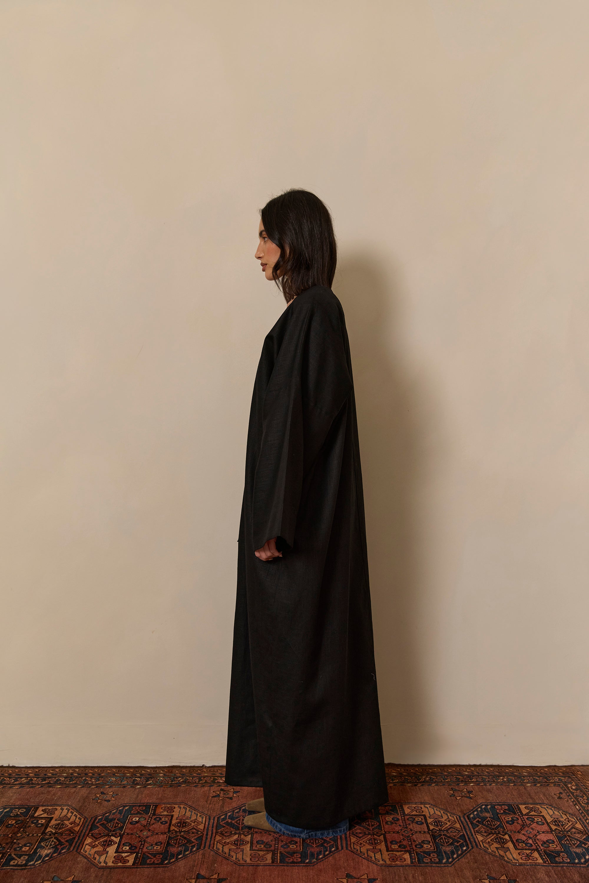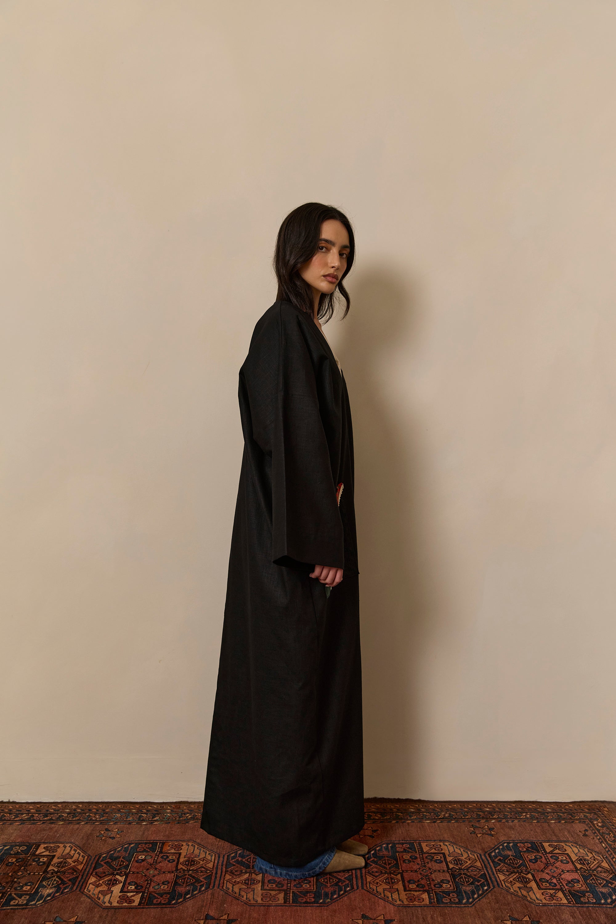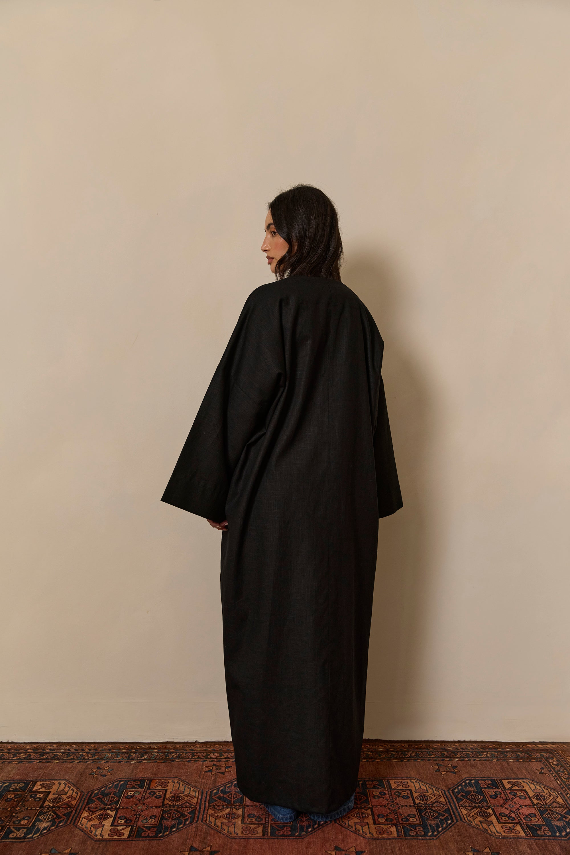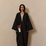 THE BLACK LINEN ABAYA - with a personalised Palestine pocket.