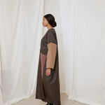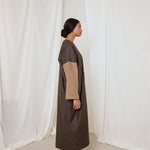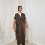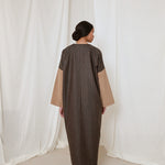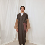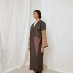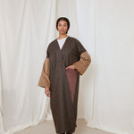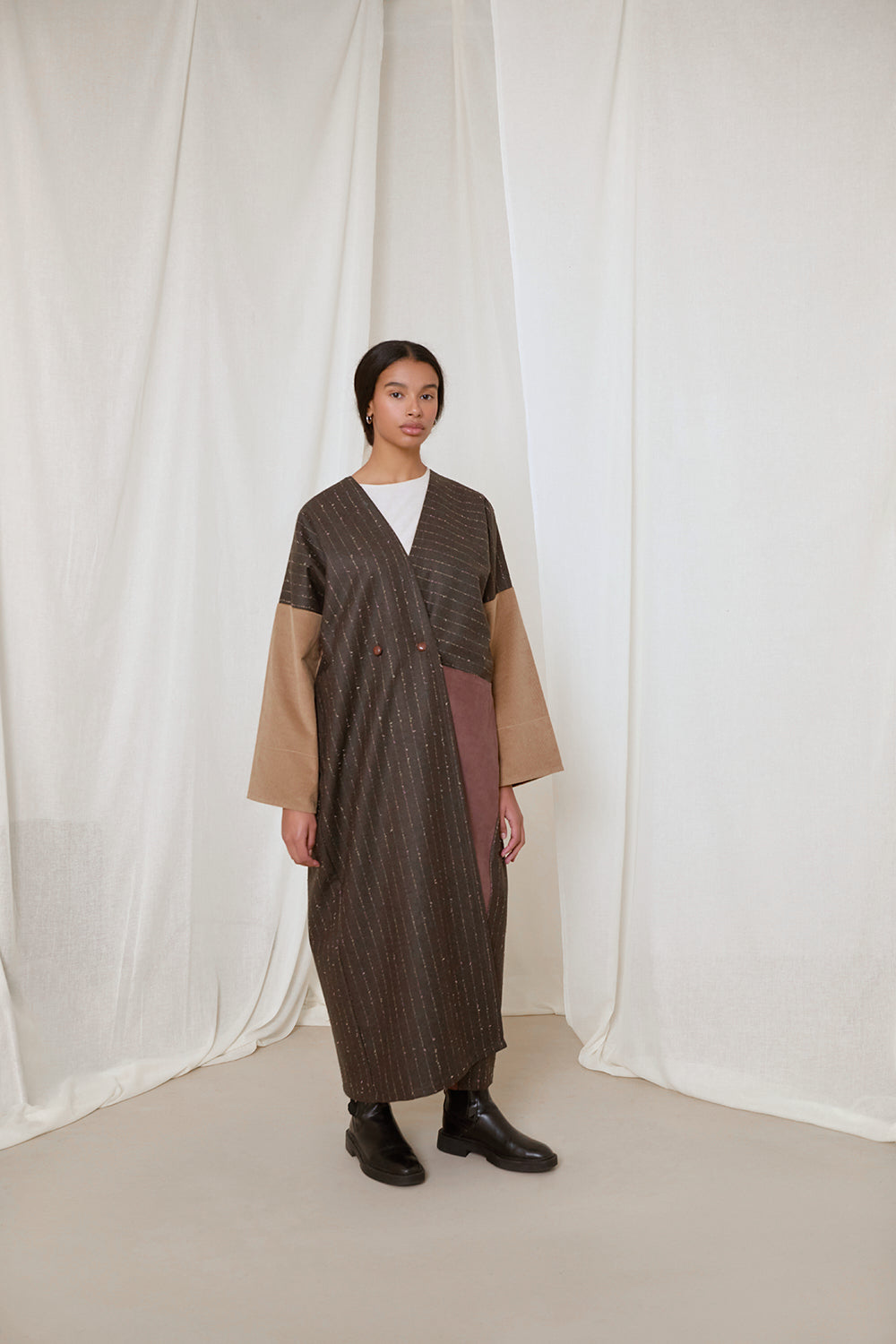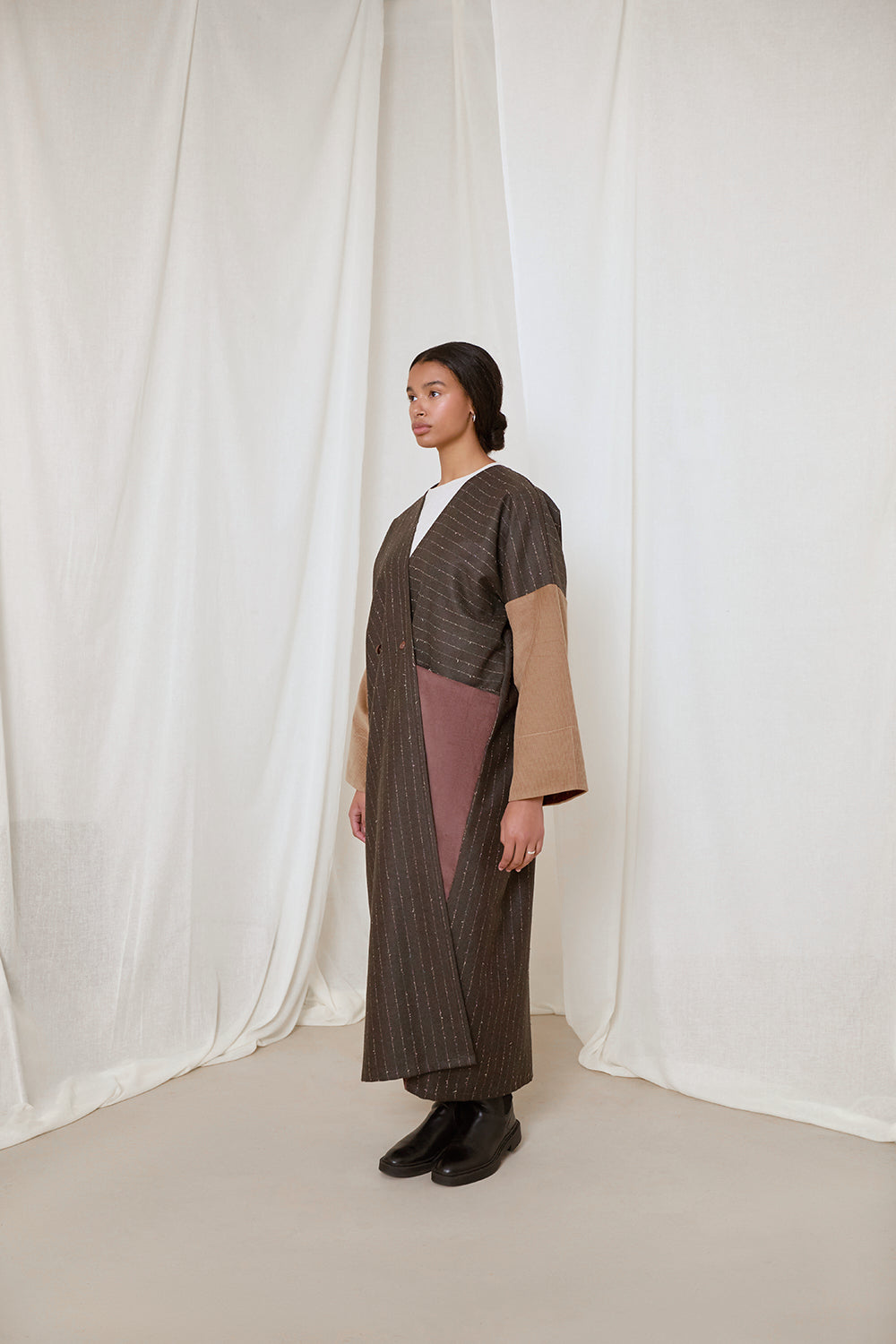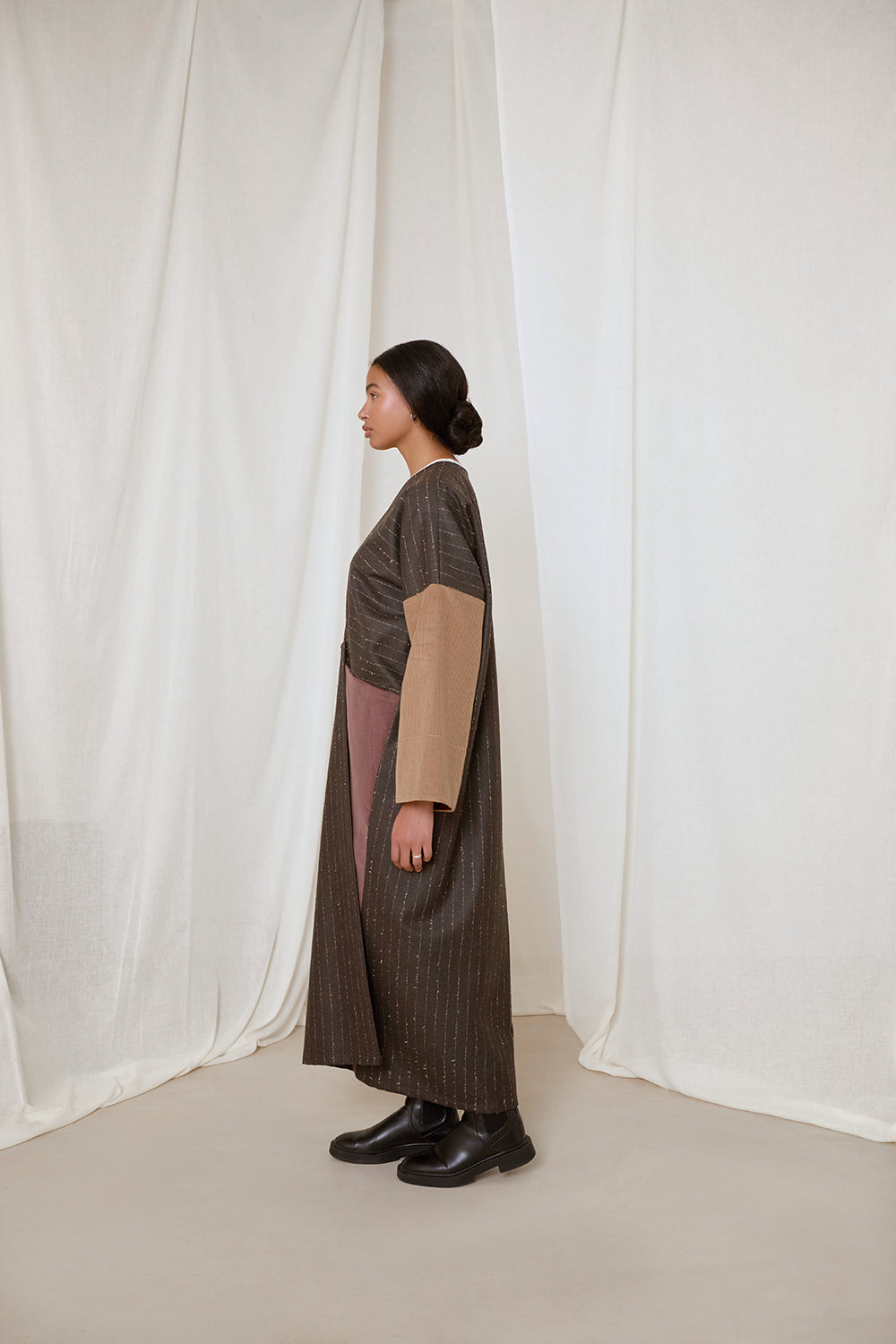 Textured stripe wool  and cotton corduroy abaya. Finished with an insert pocket.