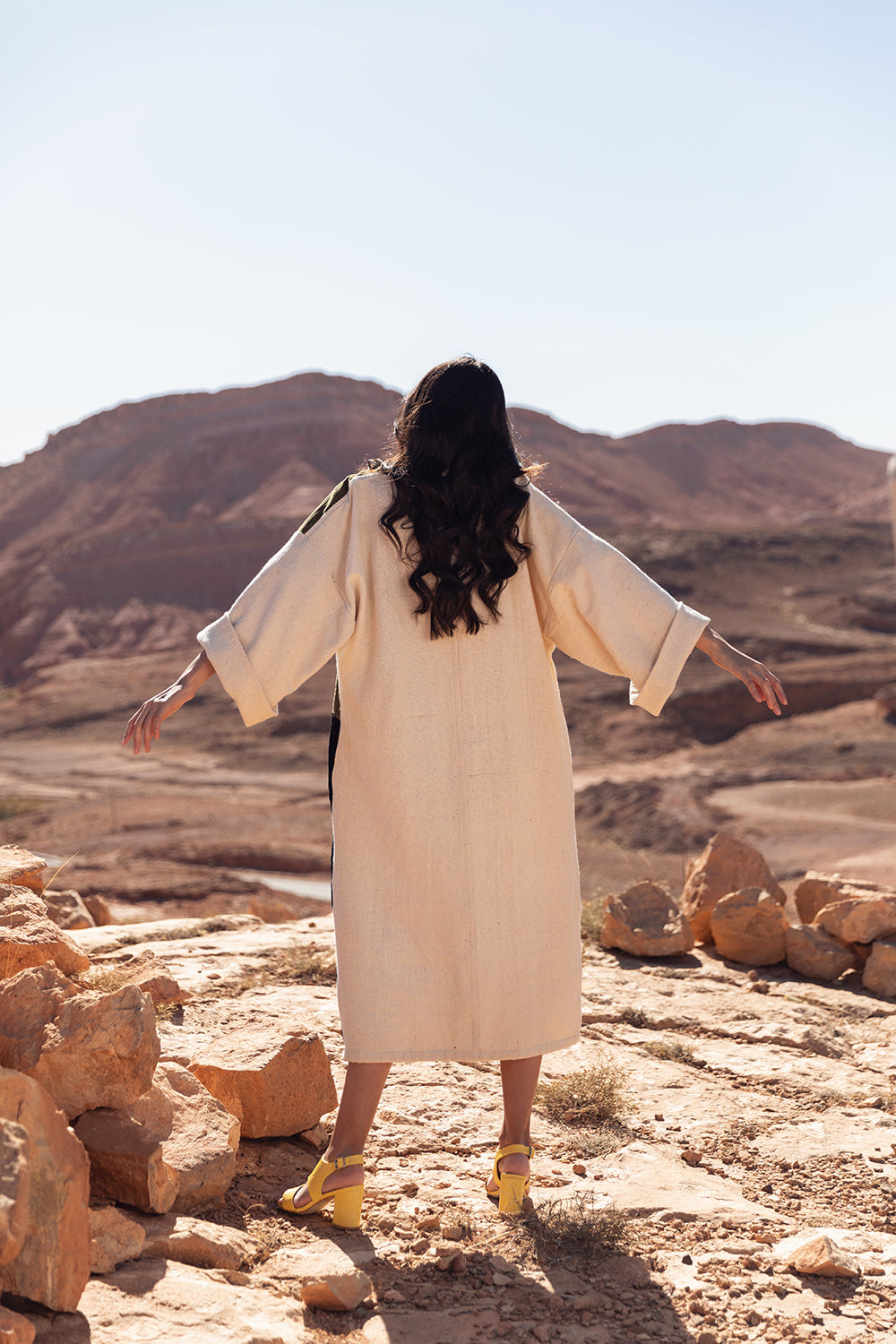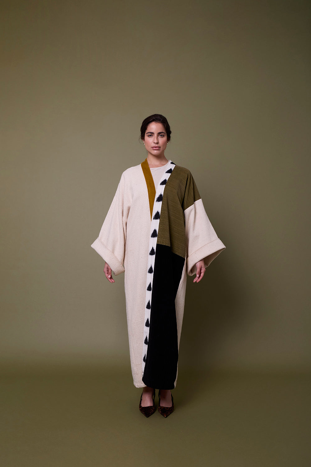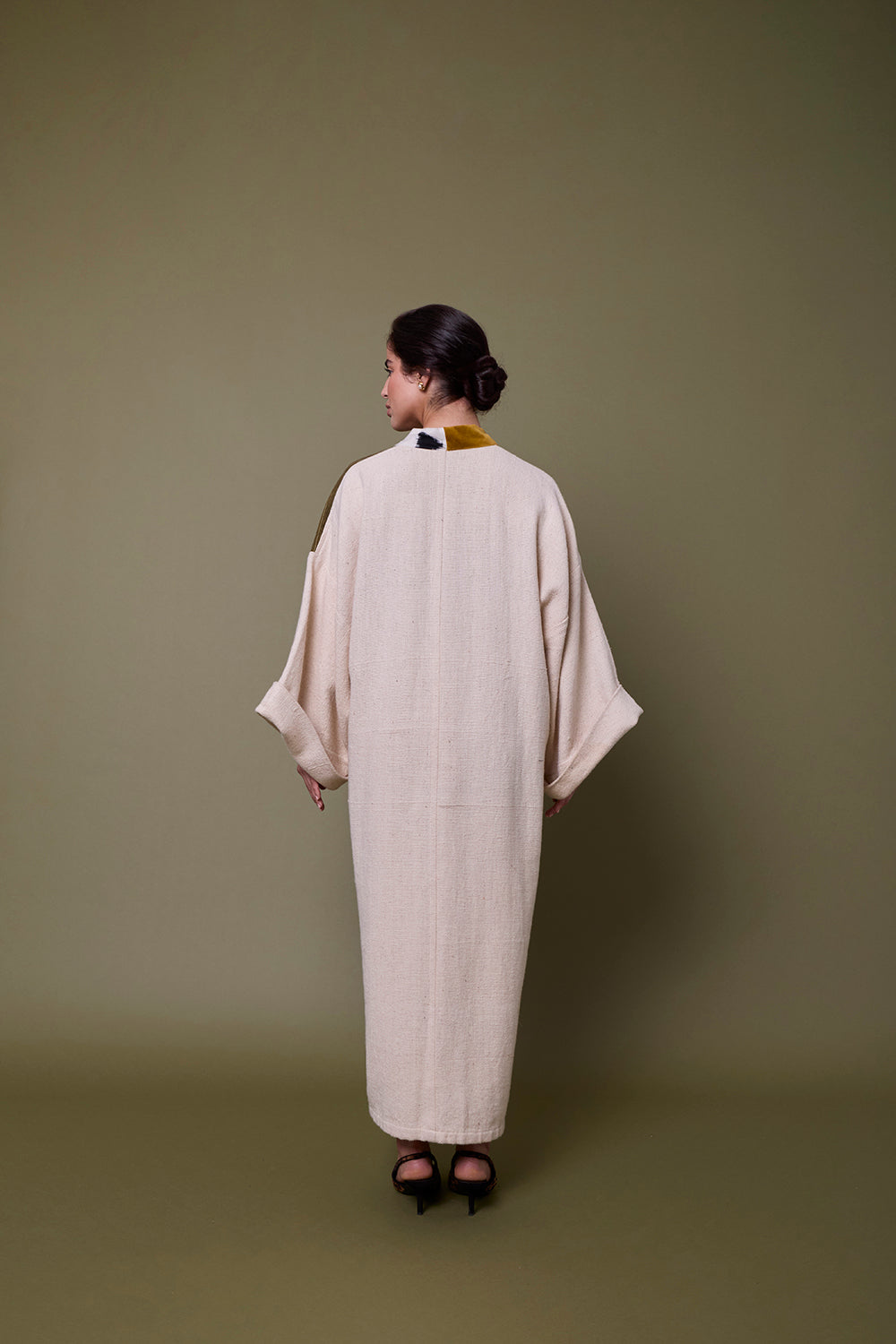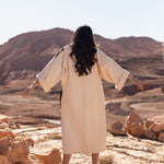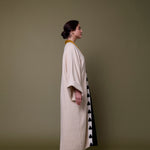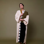 Note: This kimono is an exclusive design, hand crafted and one-off piece. The cotton is hand woven, untreated and in its natural and raw colour. Any imperfections are natural characteristics of the materials and not considered as faults, but the beauty of the artisans' craftsmanship.