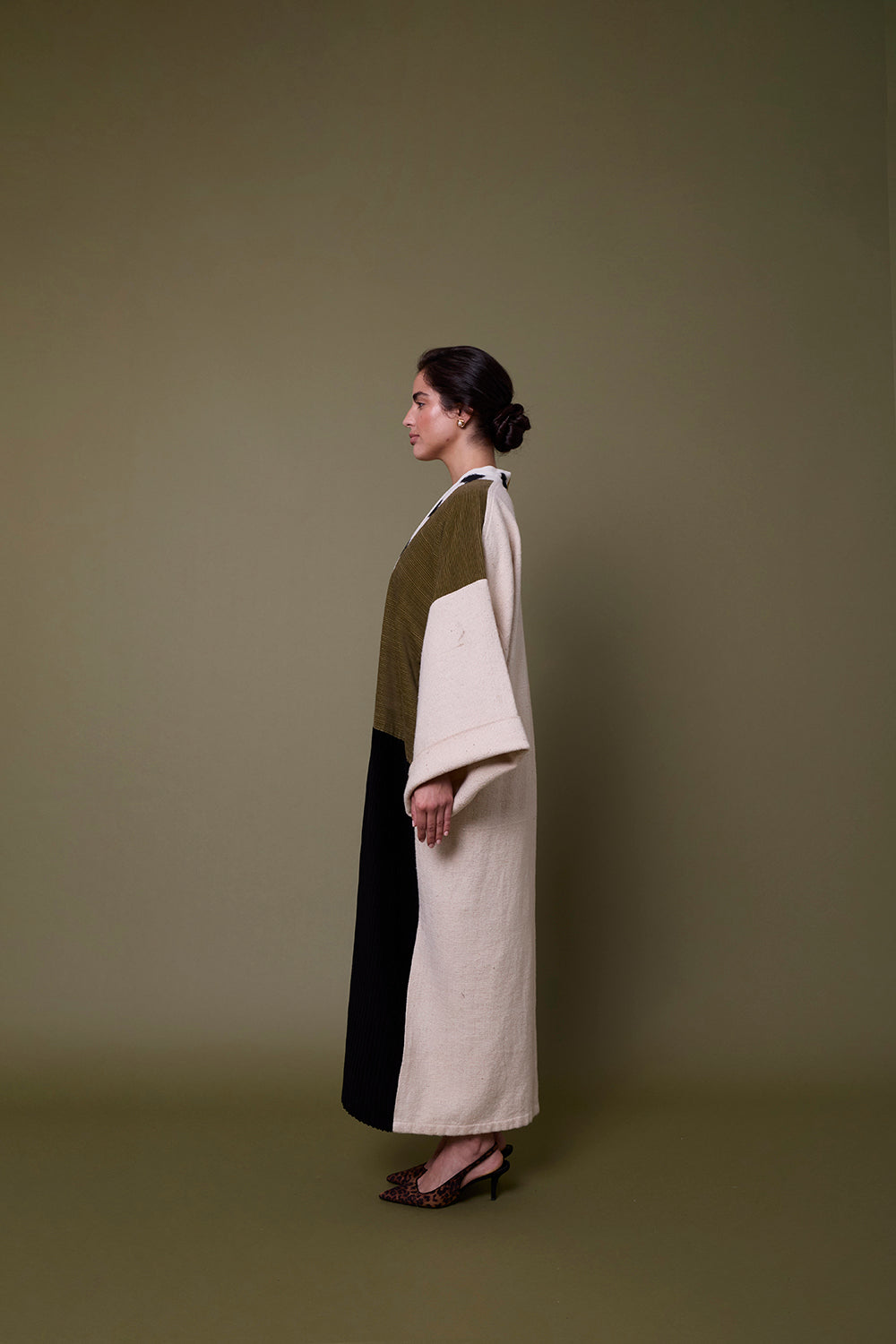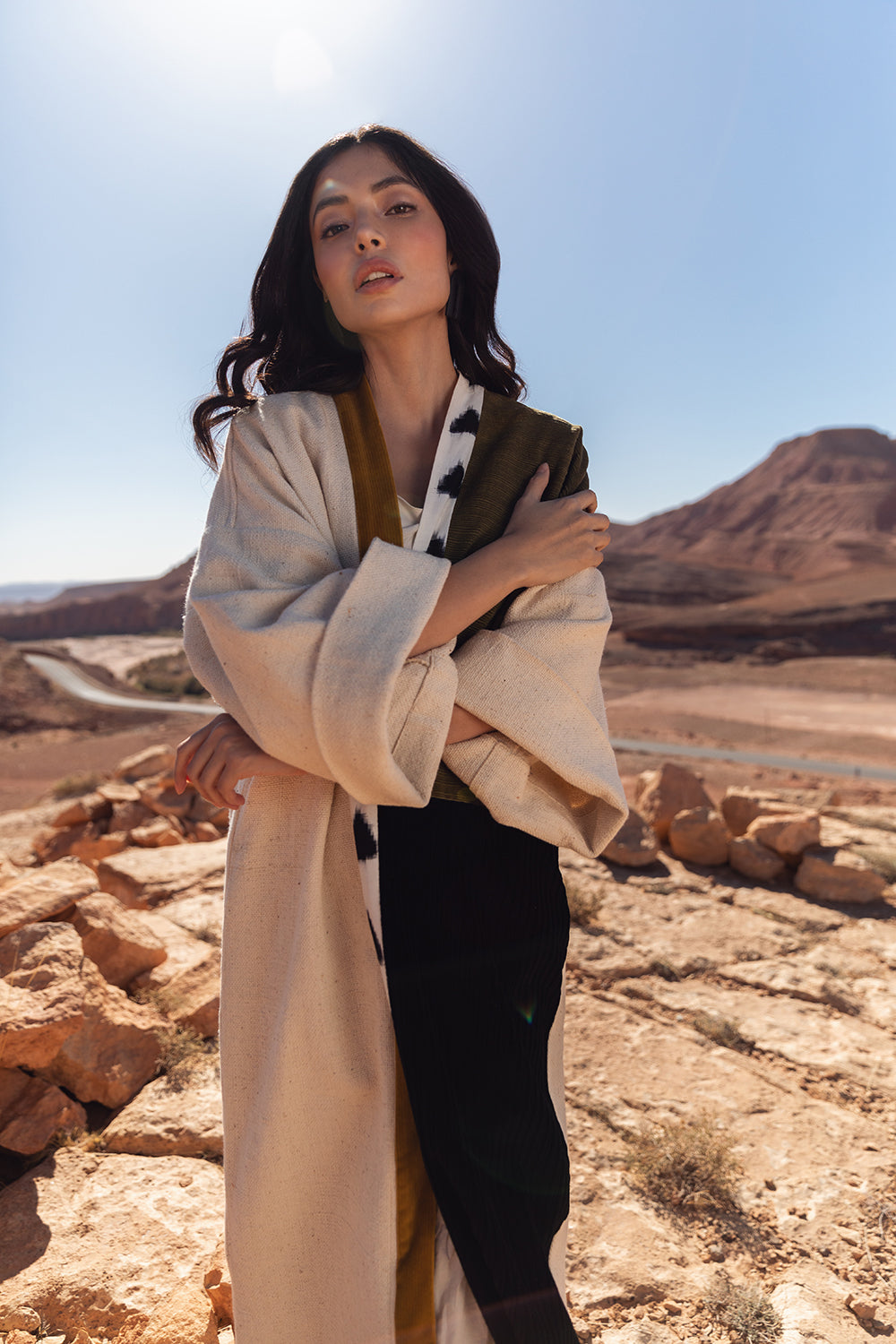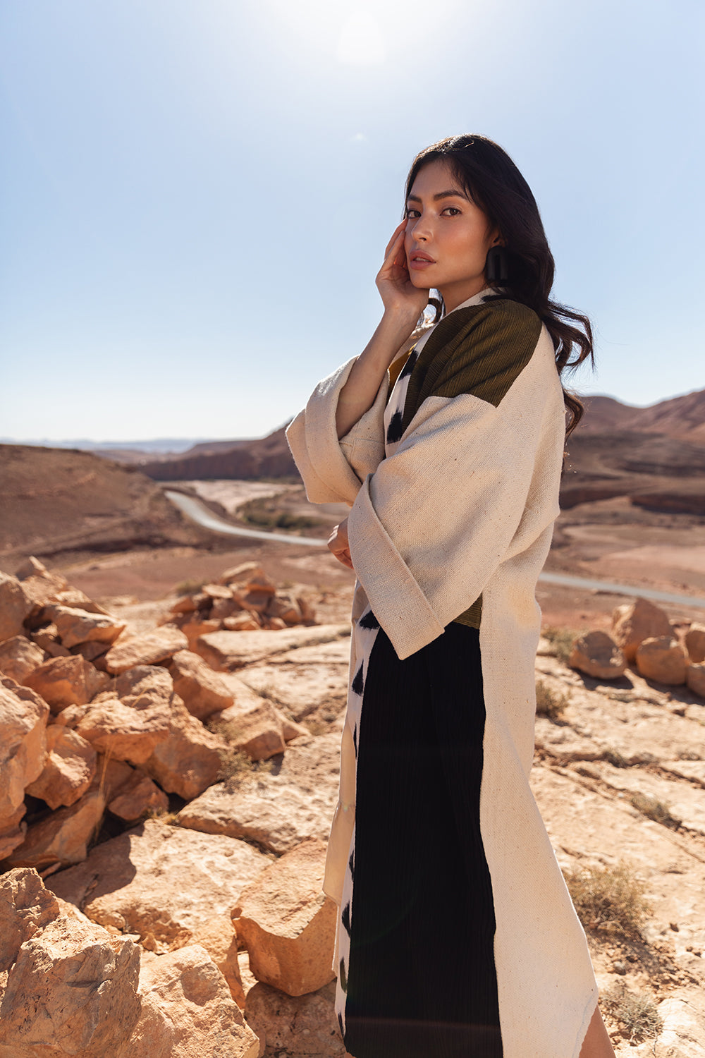 Note: This kimono is an exclusive design, hand crafted and one-off piece. The cotton is hand woven, untreated and in its natural and raw colour. Any imperfections are natural characteristics of the materials and not considered as faults, but the beauty of the artisans' craftsmanship.